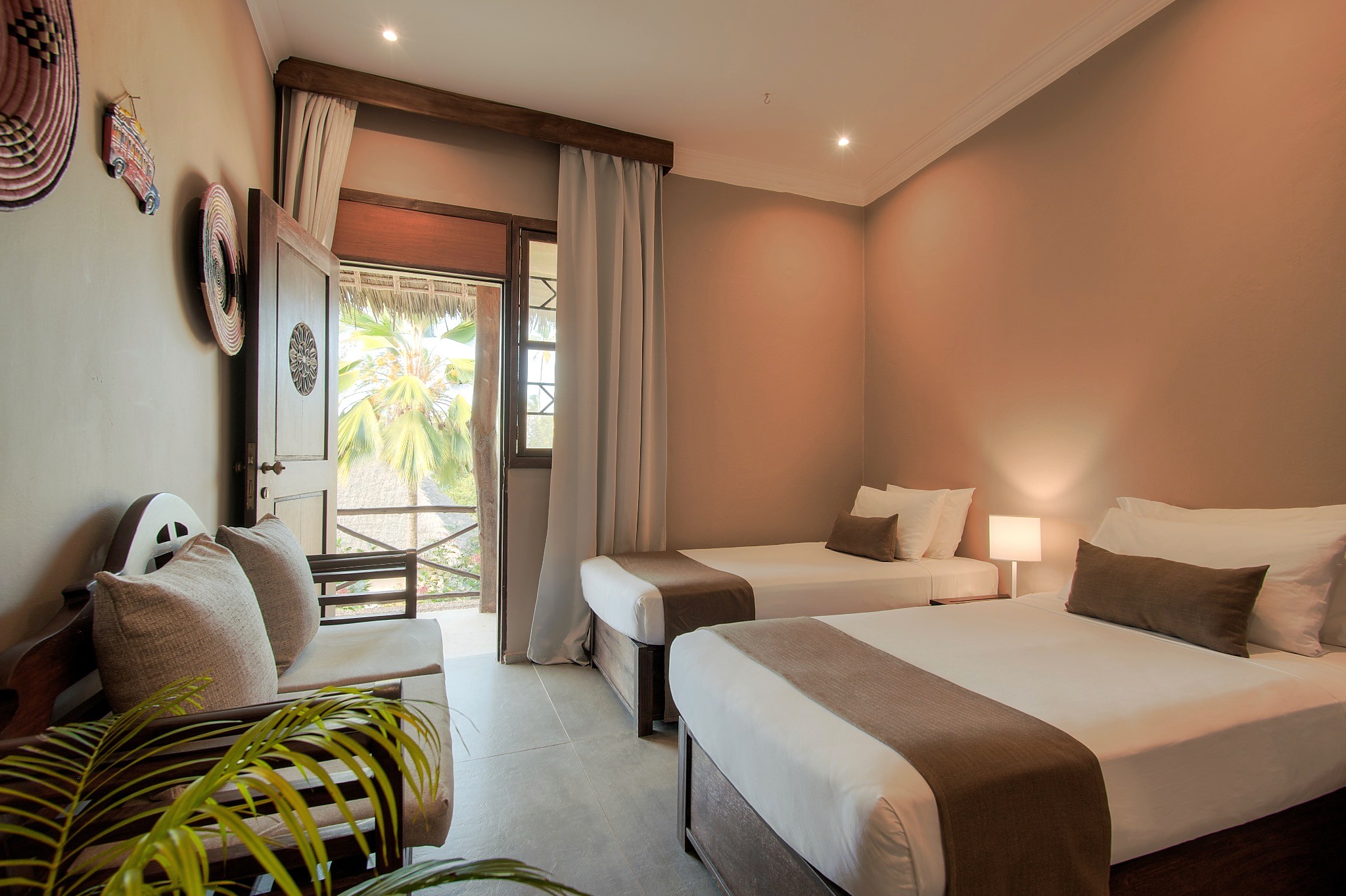 Superior Family Room at Diamonds Mapenzi Beach Zanzibar features a large main bedroom and an additional sleeping area, providing ample space for parents and children to unwind together. The comfortable king-size or twin beds are draped in soft mosquito nets for a peaceful night’s sleep.