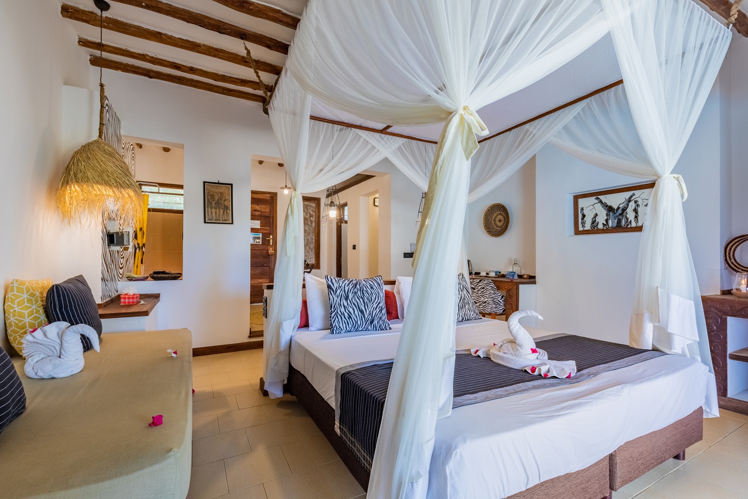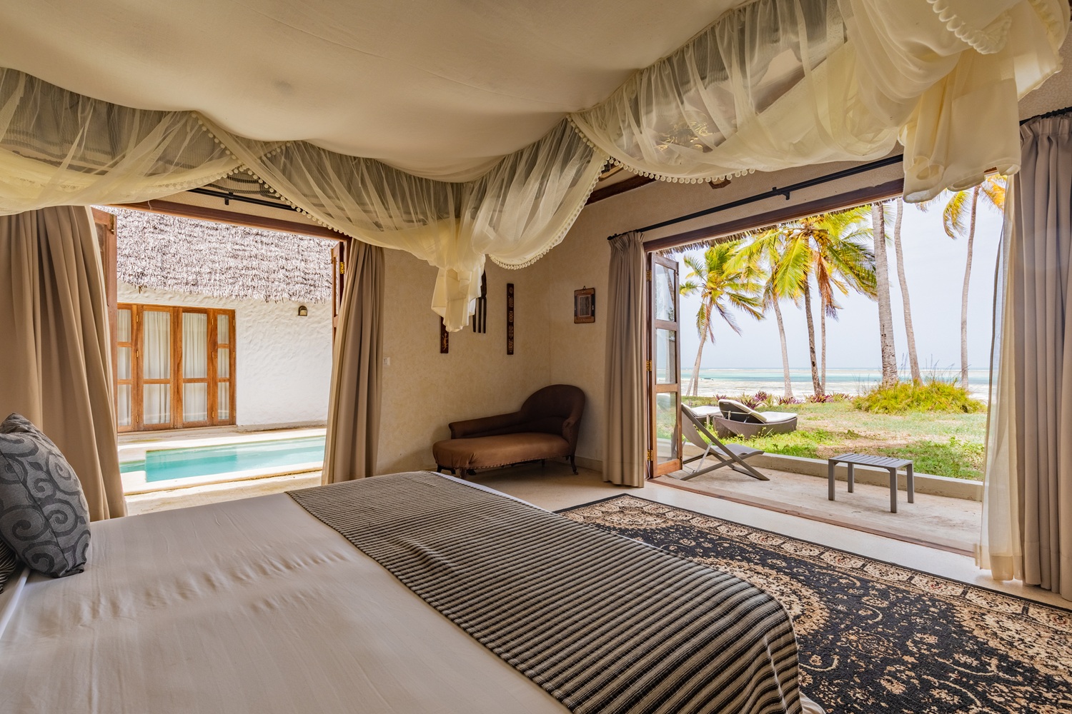 Right above the cliff on top of the white sandy beach, these rooms have a large private pool with a breathtaking view of the Indian Ocean. Perfect for couples, they offer luxury, comfort, and privacy.