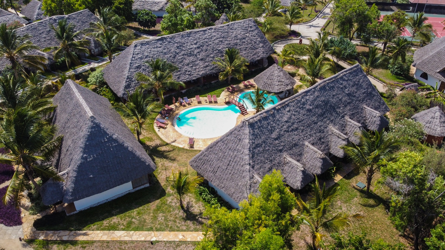 Dining OptionsGuests have the choice of 4 restaurants to enjoy something new at every meal. The Pizzamore is located inside the Bondeni Pool, serving authentic Italian pizzas and many more delicacies for lunch and dinner. The Le Grand Bleu seafood restaurant is set against the beach ocean views with an a’ la carte menu including vegetarian options. The Kijiji Main Restaurant offers a sea-view terrace, serving international theme buffets for breakfast, lunch and dinner. The Masai Villa Restaurant is located in a reproduced African Village, open twice weekly, serving traditional Swahili and Masai Dinners with folklore dance performances.