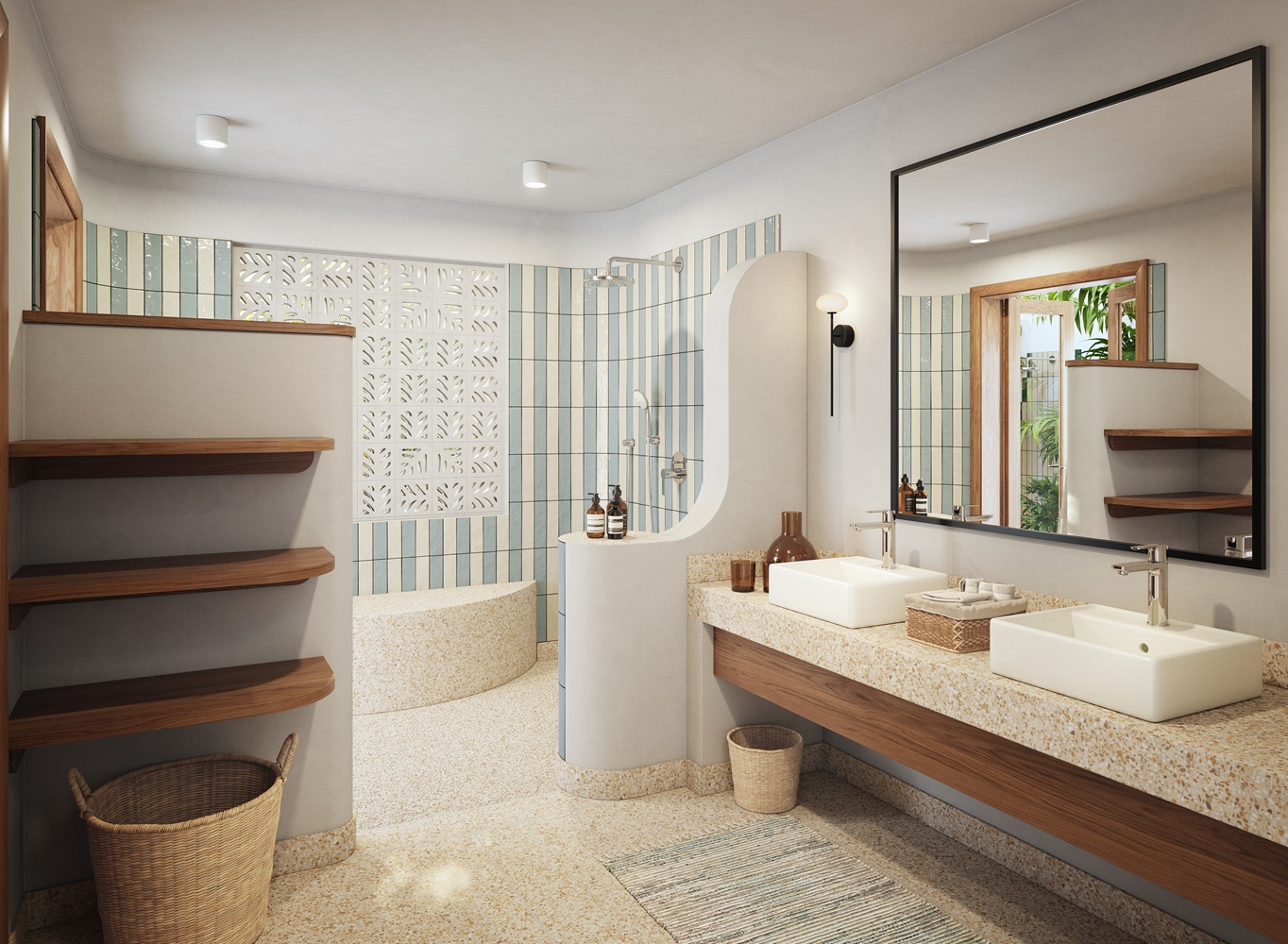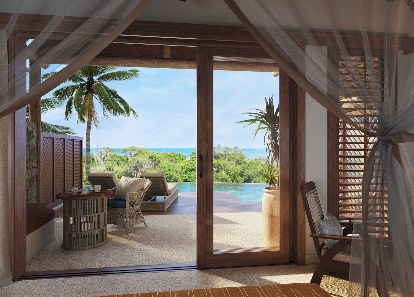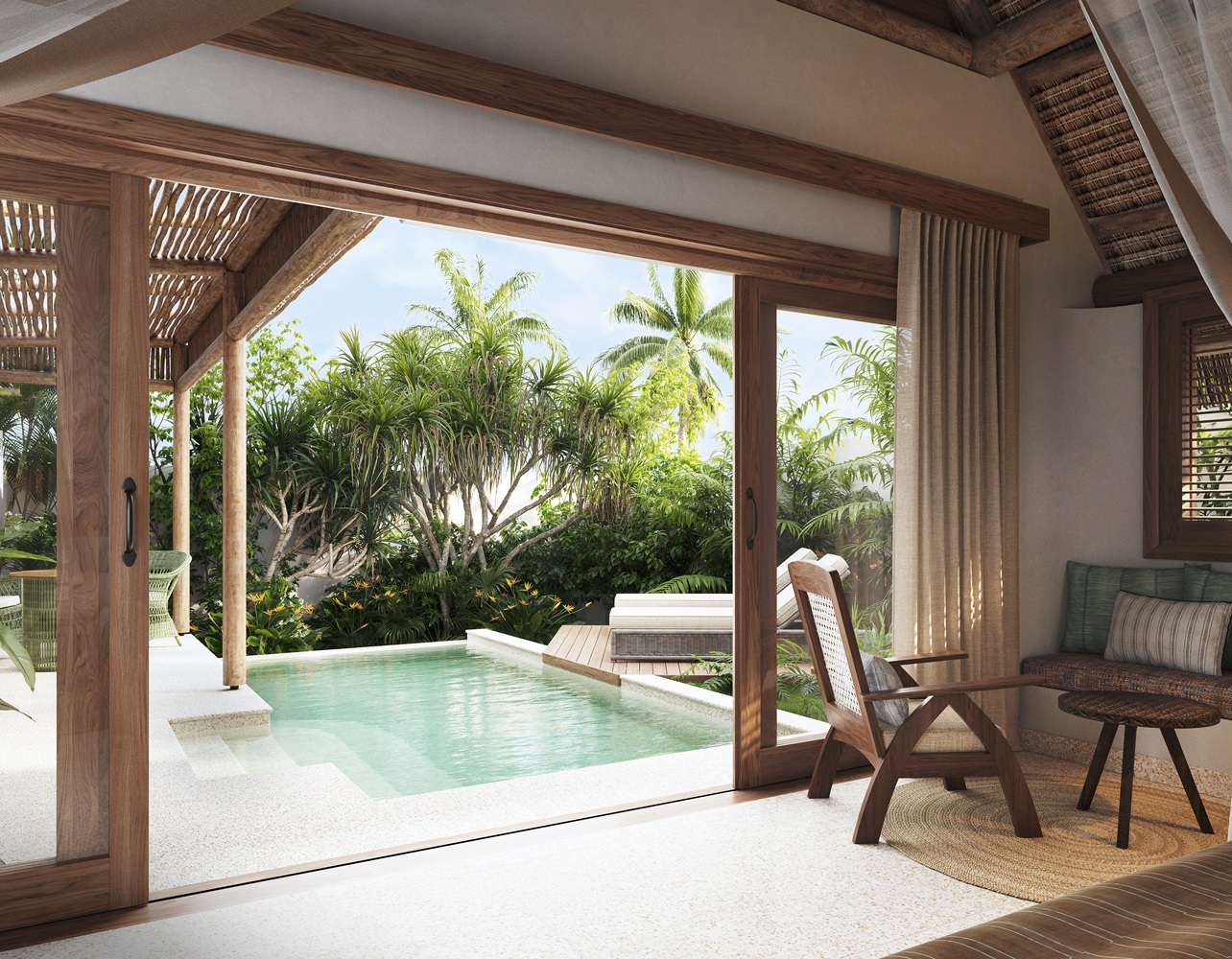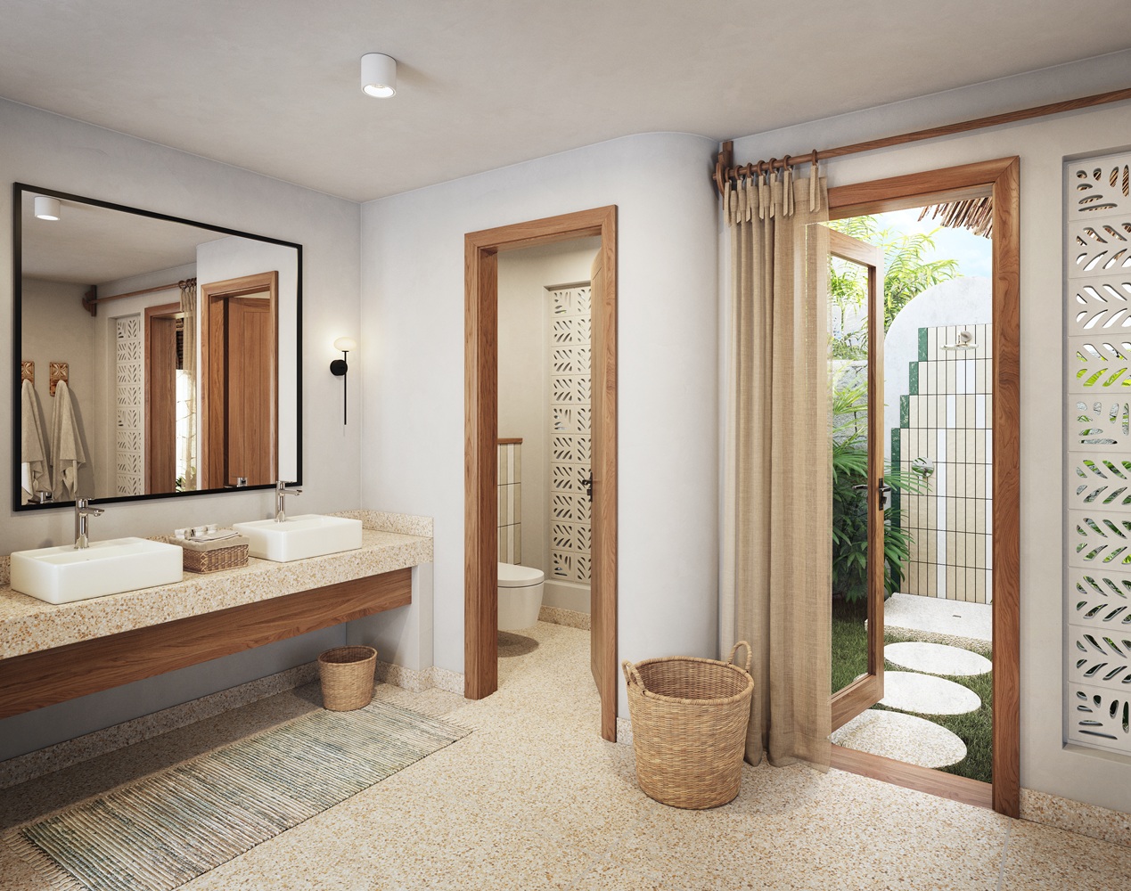 Each villa has direct access to a shared infinity pool, so you can step into the water from your terrace. An outdoor shower surrounded by nature allows you to cool off; while inside, the king-size bed faces the terrace and promises a gentle wake-up call.
