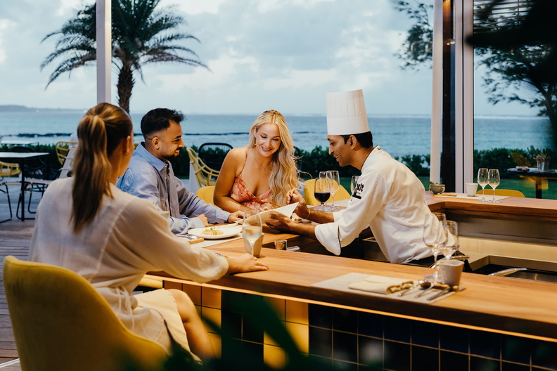 BarsThe Rooftop Bar, overlooking the ocean, is a perfect location for an aperitivo, serving a selection of cocktails inspired by mountains of the island. The Beach Bar faces the ocean on a wooden deck, serving tasty Mauritian snacks and cocktails made from seasonal fruits and herbs. The Pool Bar serves the best craft beers brewed in Mauritius as well as cocktails.