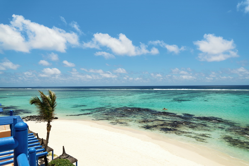 Your view is the filao trees on the beach and the turquoise lagoon beyond. The room enjoys a balcony or terrace and a handmade king size Care Diem bed with 100% organic cotton bedding.